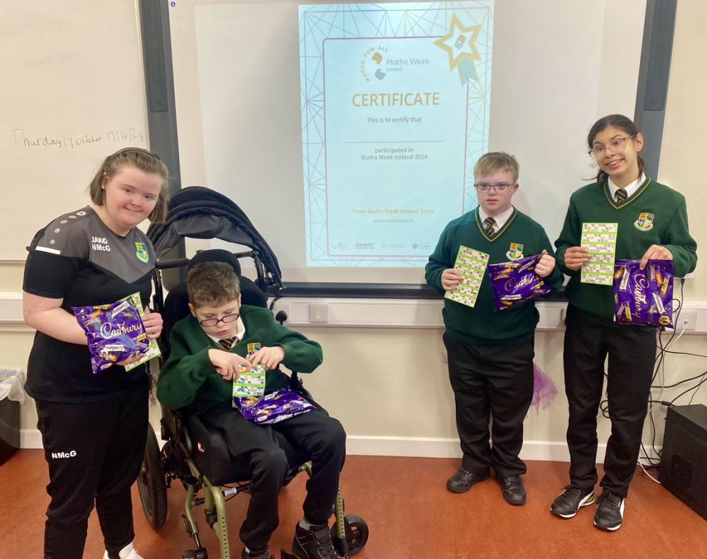 The students in Rang Mhic Diarmada and Tearmann were also delighted to be treated to a special showcase of creative and engaging Maths Week games by the TY students from 4B. They all walked away with some well earned prizes.