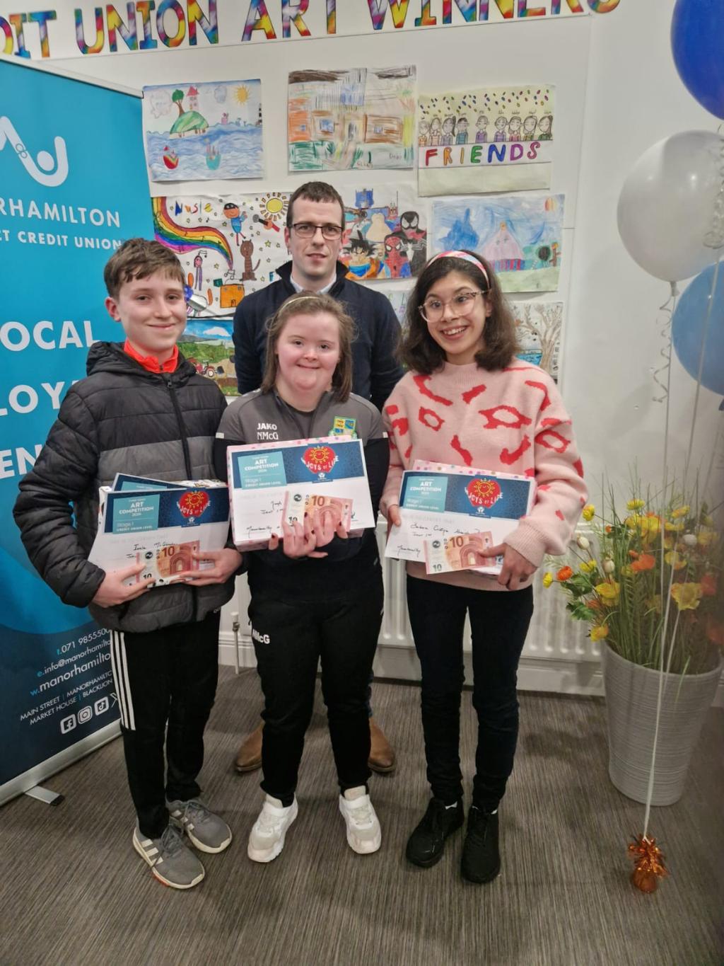 Uncategorized Manorhamilton Credit Union Art Competition Posted on January 16, 2025 by School App School App 16 Jan Irla, Niamh, Barbara and Daithi receiving their prizes from Manorhamilton Credit Union Art Competition. Well done everyone. Missing is Sean. We wish Sean all the best in Dublin today and a speedy recovery. School App School App Certified Irish Angus Schools Competition North Connaught Schools Cross Country