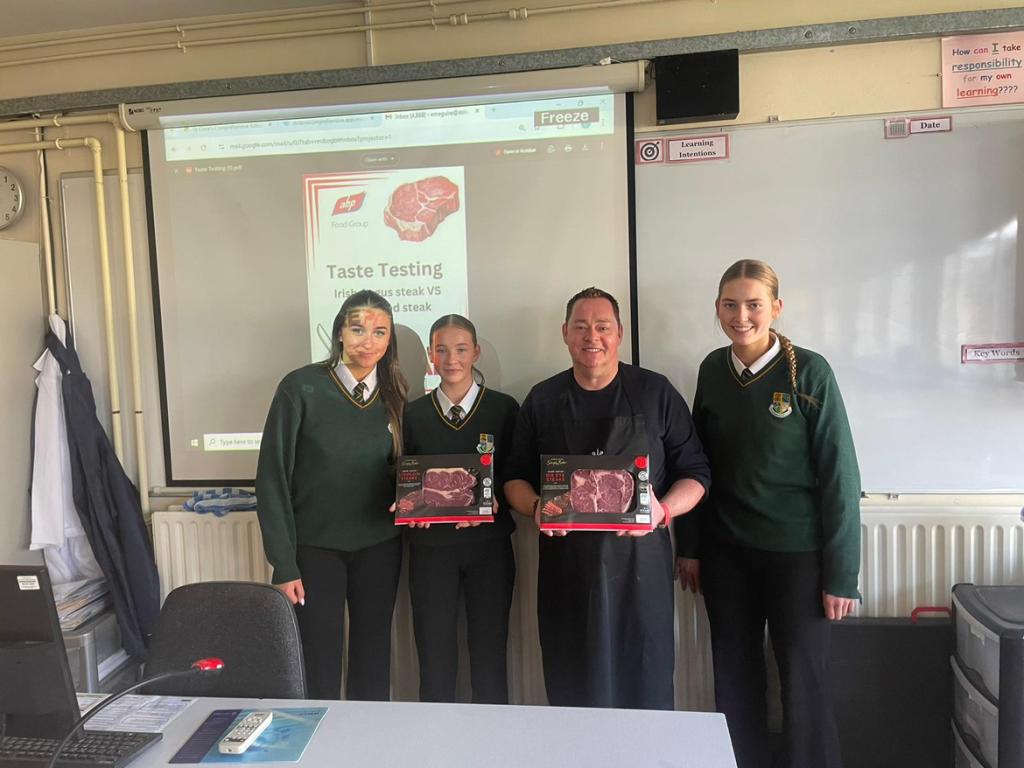Neven was very kind in both supplying the Certified Irish Angus steaks and presenting signed copies of one of his recipe books to Ms. Kelly (Principal) and other members of staff. The event was a great success and a very enjoyable experience for all who took part.