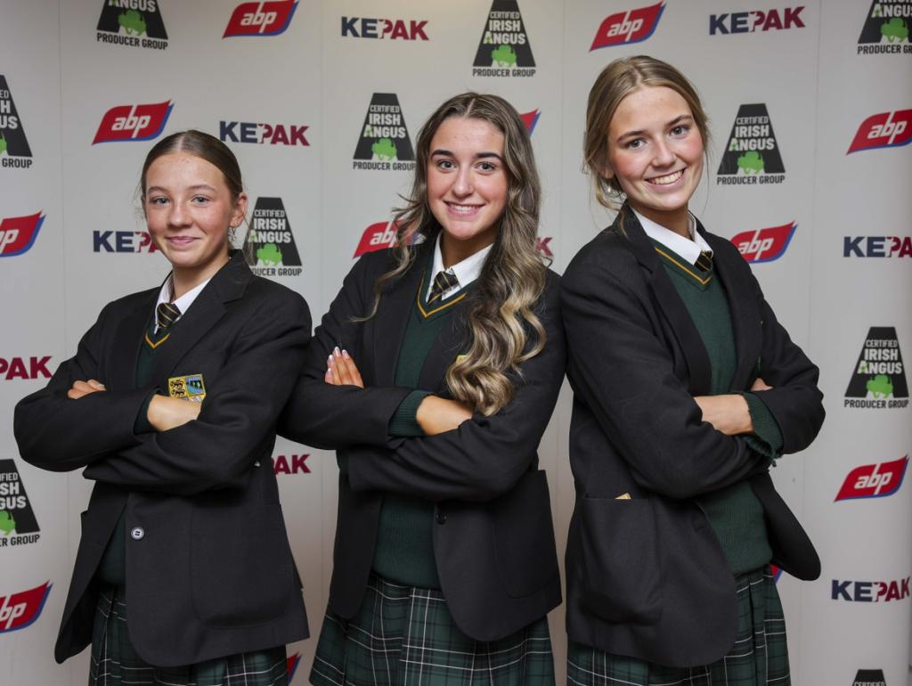 Well done to Mia Connolly, Cara Keegan and Cadhla Moffitt who competed in the final round of the Irish Angus Schools competition last Friday in Croke Park. The girls were interviewed by five different industry judges from ABP, Kepak and the Irish Angus Society about their project on feeding seaweed to cattle can reduce methane emissions. The girls were one of 44 groups from around Ireland presenting their research. In the coming weeks 5 groups will be announced as the winners of the Irish Angus calves which they will take to finishing. Let’s hope all the girls hard work pays off. Well done.