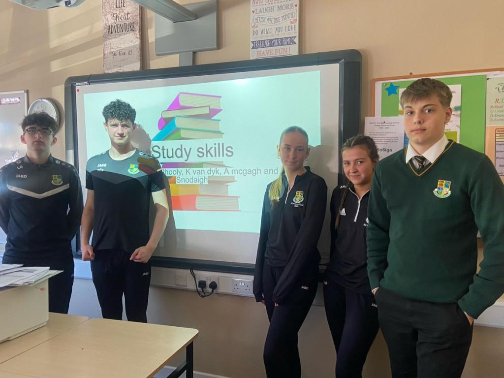 On Monday, the Transition Year Guidance students delivered presentations on study skills and shared infographics with the first, second, and third-year students. Study skills encompass the competencies and learning strategies essential for effective information processing and retention, including time management, note-taking, active reading, and memorization. The students shared valuable insights they found useful while preparing for their Junior Cycle examinations, such as the Pomodoro technique, learning strategies tailored to different learning styles, and the use of mind maps. Study skills tips and resources were provided to students during their Guidance classes and through online platforms.