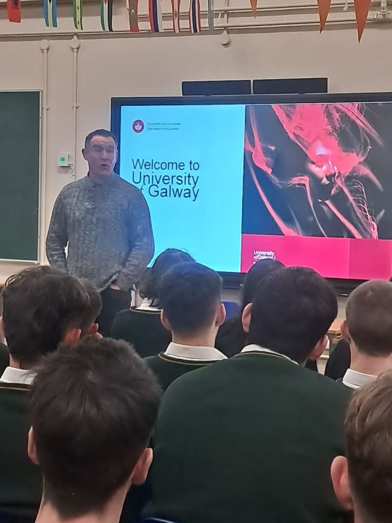Danny from the University of Galway paid a visit to LC students on Monday and gave an impressive presentation. He not only spoke about all the University of Galway offers but also spoke to students encouraging them to become students in any institutions. To experience higher and further education and all it can offer.